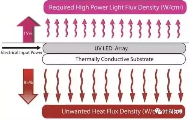 uvled光固化機將15到25%的電能轉換為光,這比傳統(tǒng)的汞燈效率要高,但剩下的75%-85%仍然被轉換為了熱。因此,必須要保持LED陣列的冷卻。